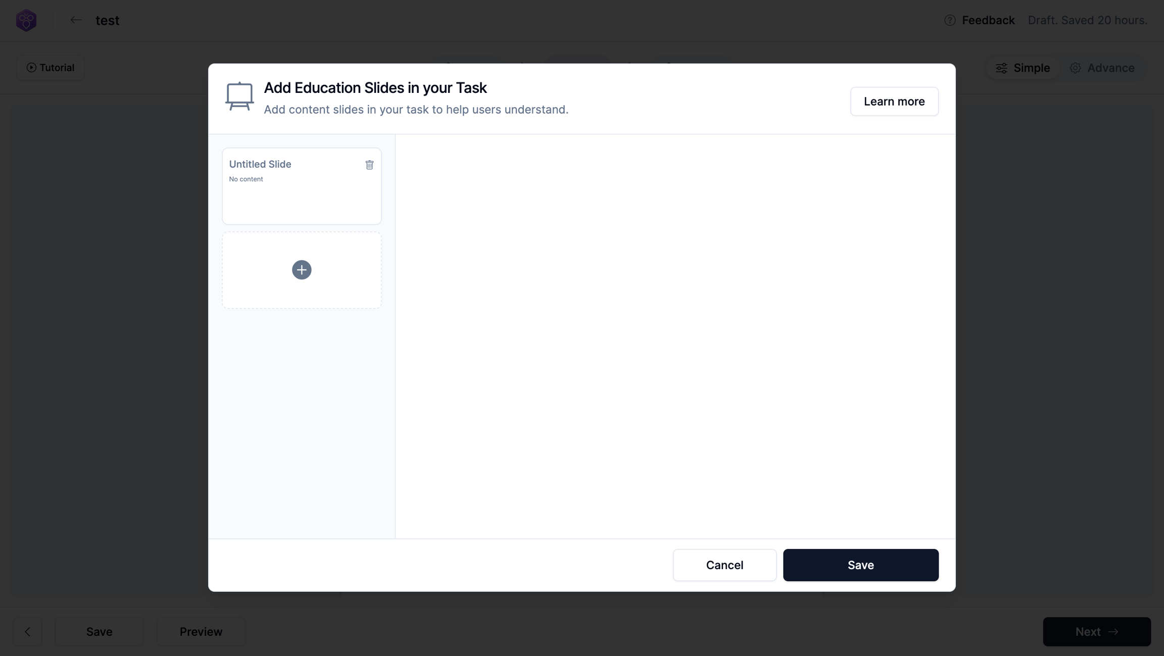 The feature of adding educational slides can significantly enhance user understanding and engagement. These slides can be like a step-by-step guide, simplifying complex tasks. If users struggle with a particular task, these slides can break it down into manageable parts, ensuring no user is left behind.