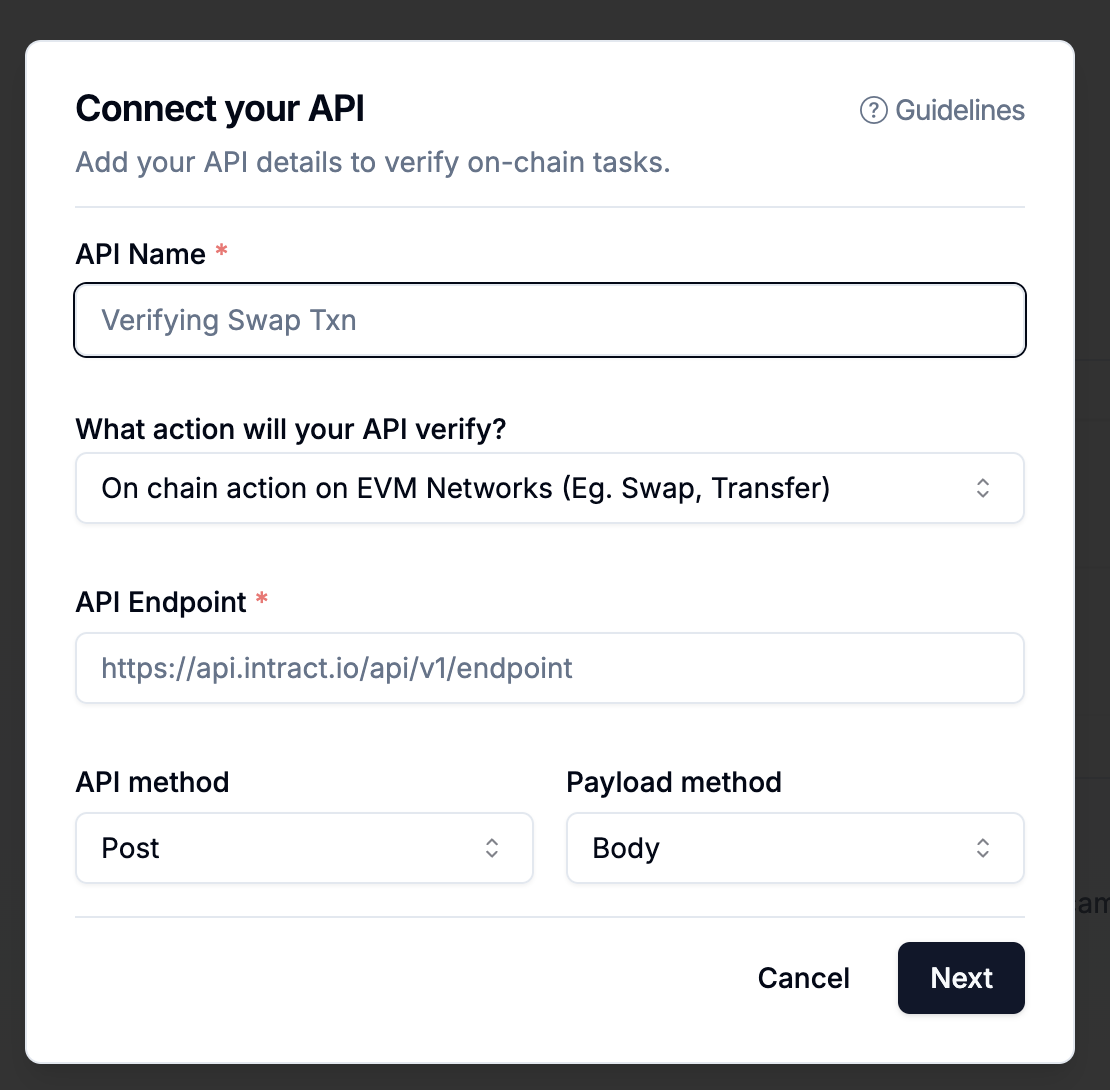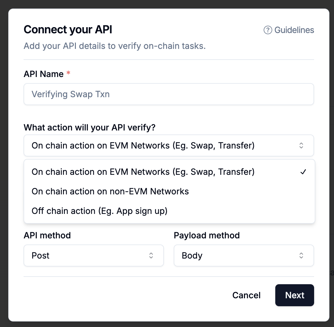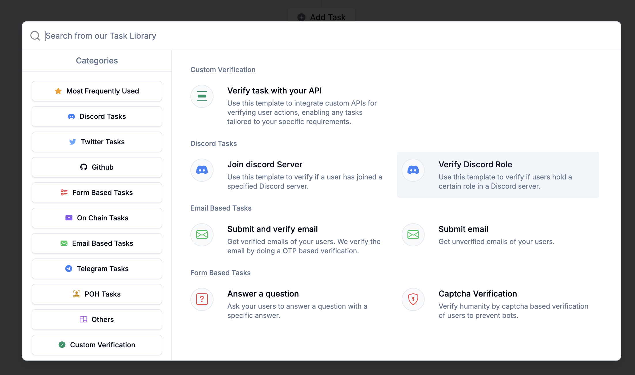 Smooth Flow: Ensure tasks flow logically and are user-friendly to reduce friction and confusion. For example, don’t include a 'Verify Discord Role' task without first prompting users to join your Discord server, as it may confuse users or cause unnecessary friction. Avoid including a 'Verify ownership of an ERC 721 NFT' task without directing users to the website where they can mint it.