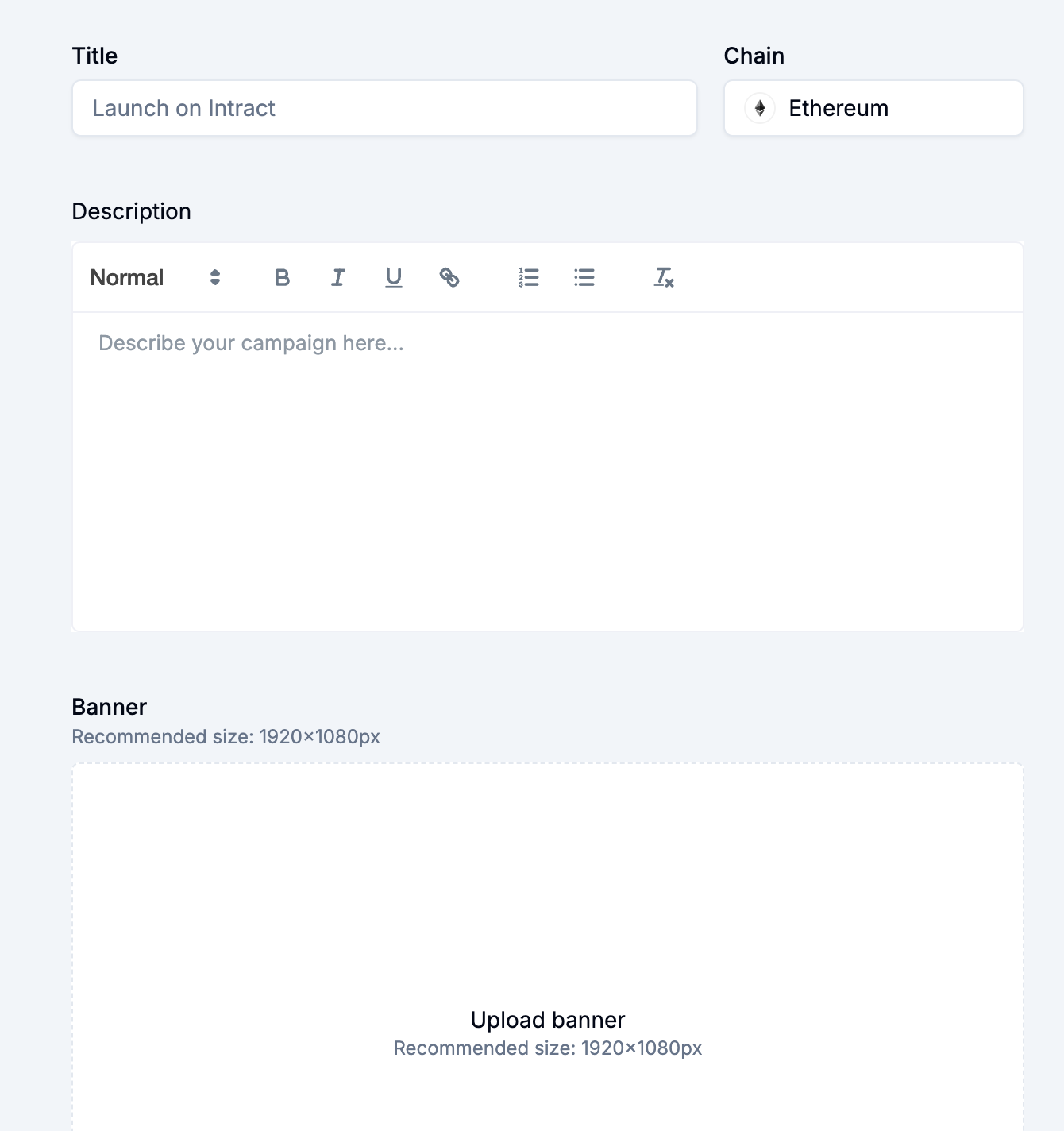 Feature your and your questing partner’s logo (Yours truly, Intract), quest title and do highlight the rewards! Specify the reward type and, if possible, its utility (e.g., "Earn Points," "Win 100 USDT," "Exclusive NFT with Special Access") to attract questers.
