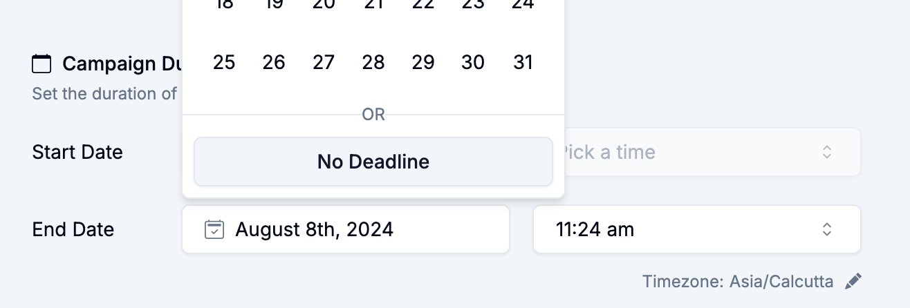 An optimised duration for your campaign would be 2 weeks. This will allow users to get to know your project/tasks well and for word to spread + give time to users to complete it as well.